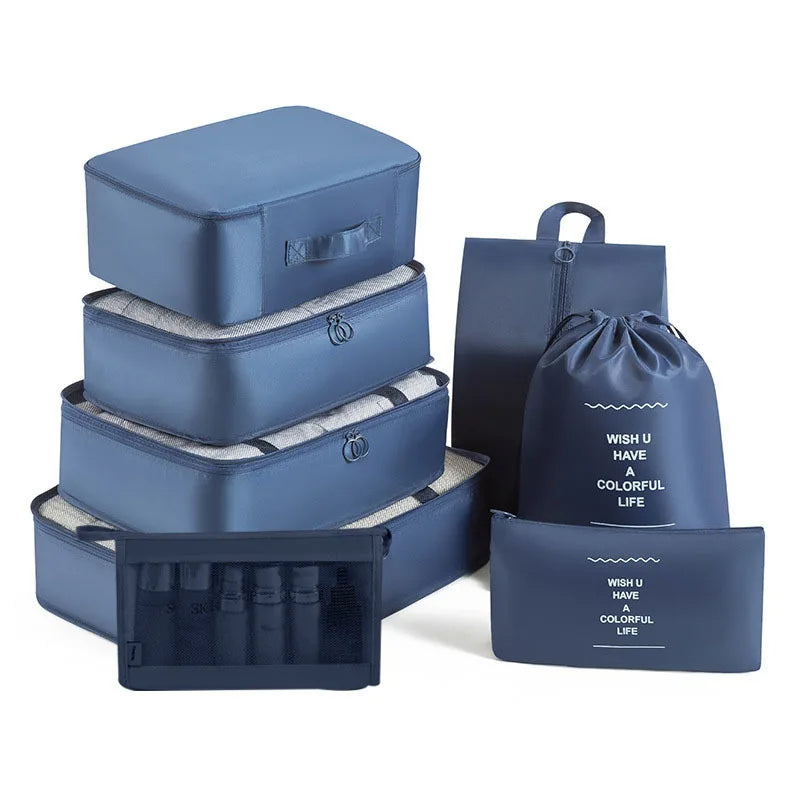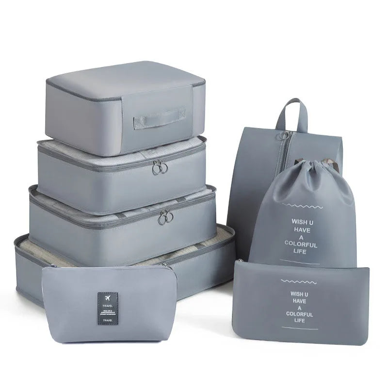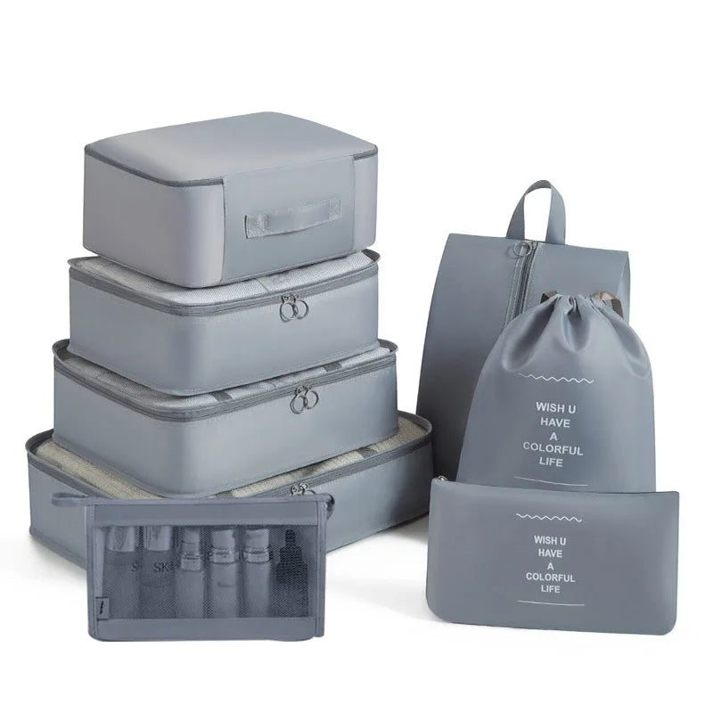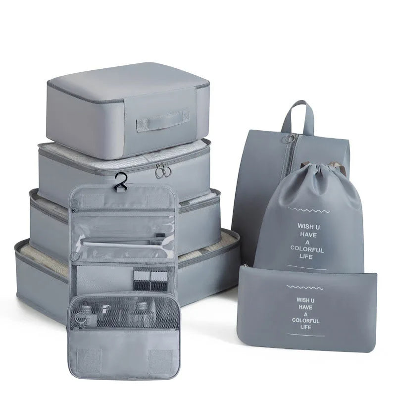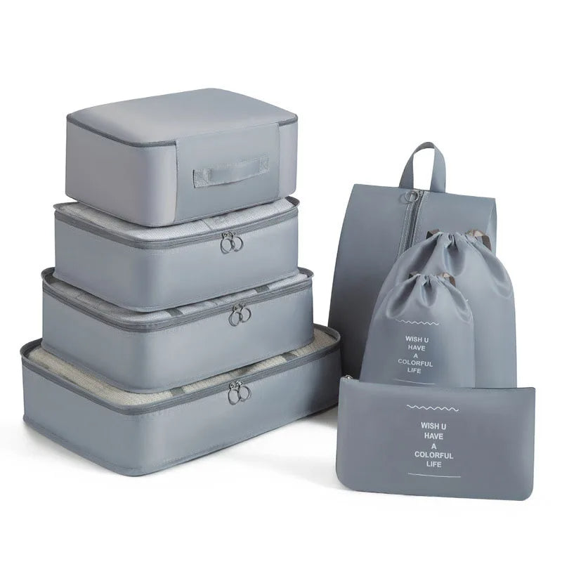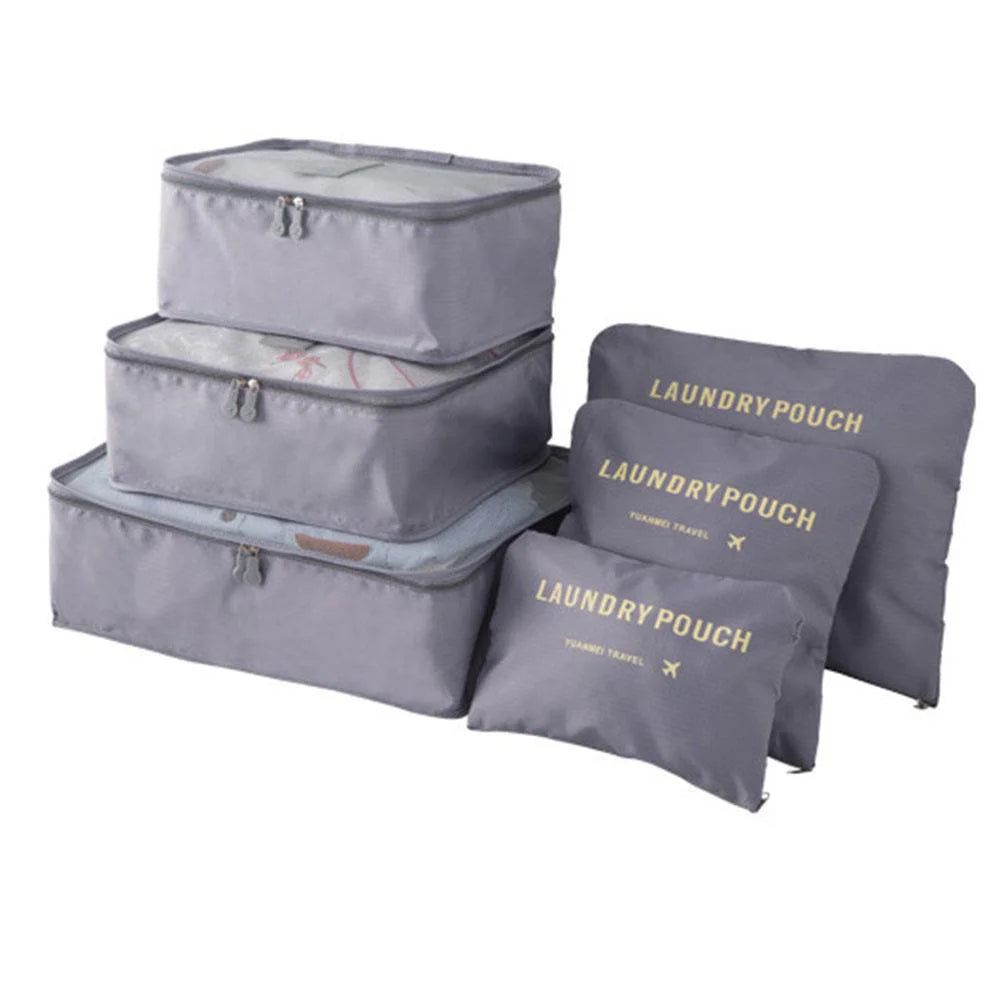 Kelionėse palaikykite tvarką su šiuo 6 , 7 ar 8 dalių kelioninių krepšių rinkiniu – puikiai tinka drabužiams, aksesuarams, avalynei ar kosmetikai susidėti. Krepšiai lengvai telpa į lagaminą, kuprinę ar net stalčių, todėl daiktai visada bus po ranka ir tvarkingai sudėti.