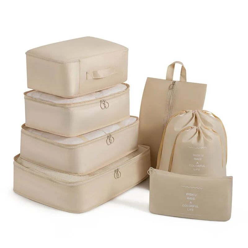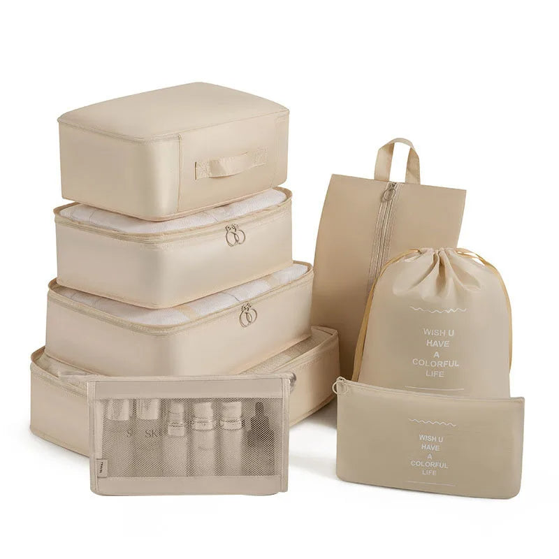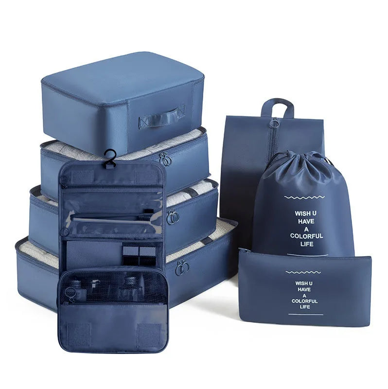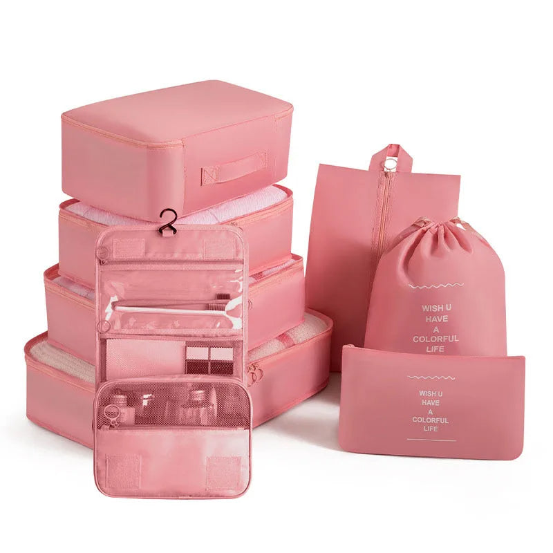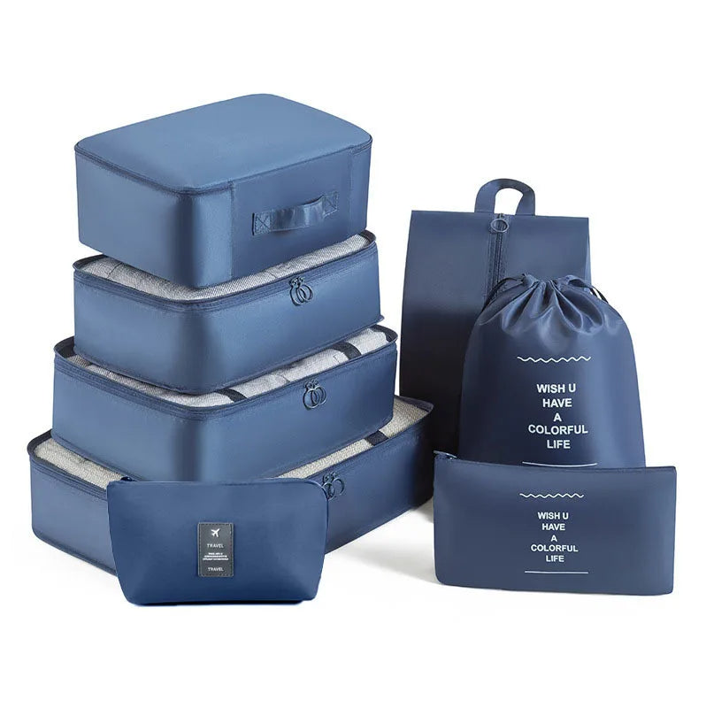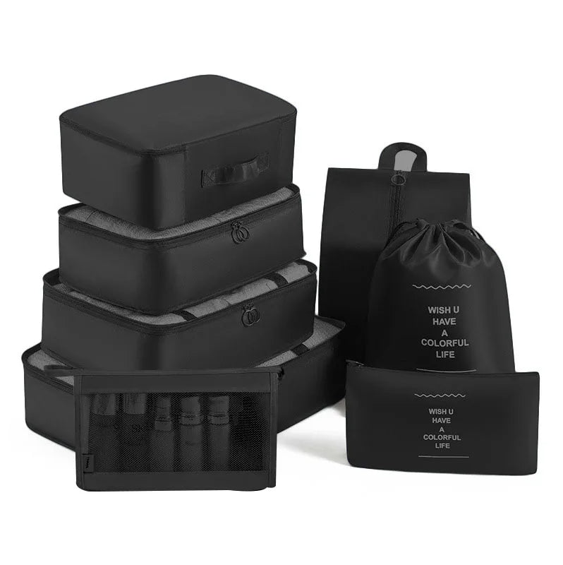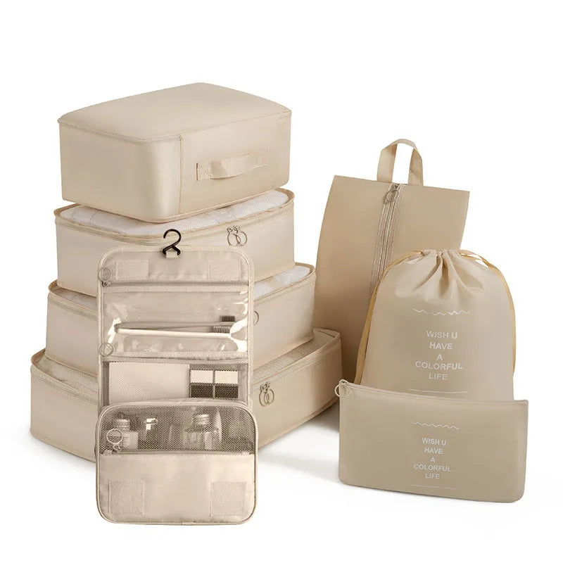 Kelionėse palaikykite tvarką su šiuo 6 , 7 ar 8 dalių kelioninių krepšių rinkiniu – puikiai tinka drabužiams, aksesuarams, avalynei ar kosmetikai susidėti. Krepšiai lengvai telpa į lagaminą, kuprinę ar net stalčių, todėl daiktai visada bus po ranka ir tvarkingai sudėti.