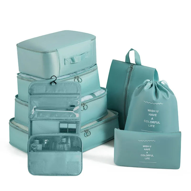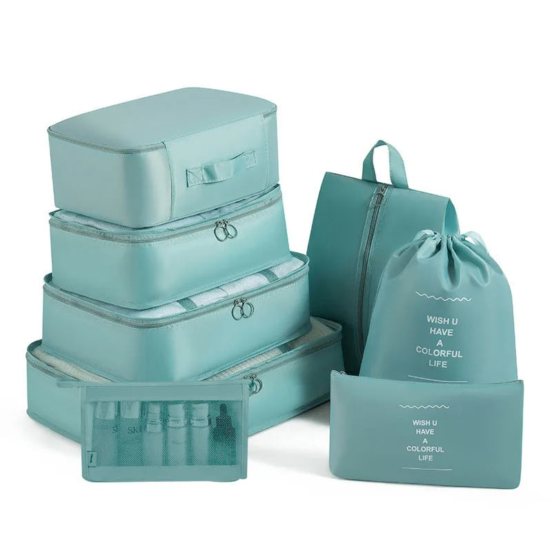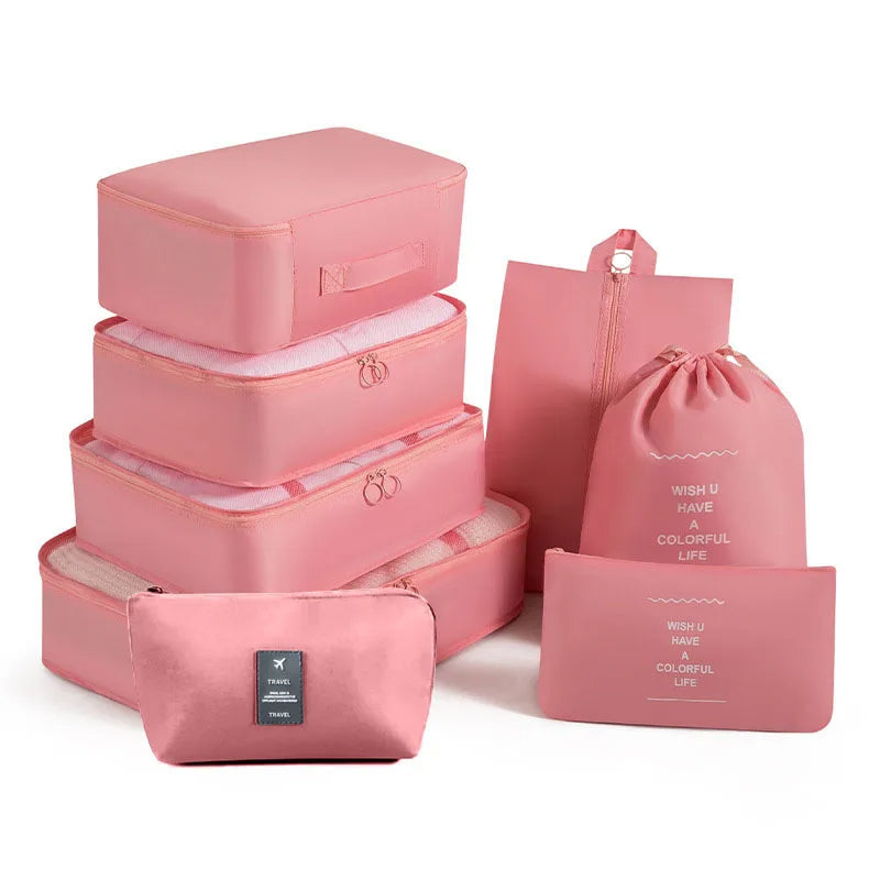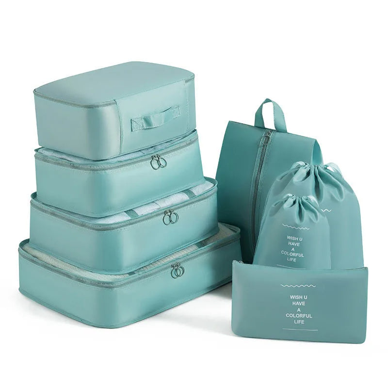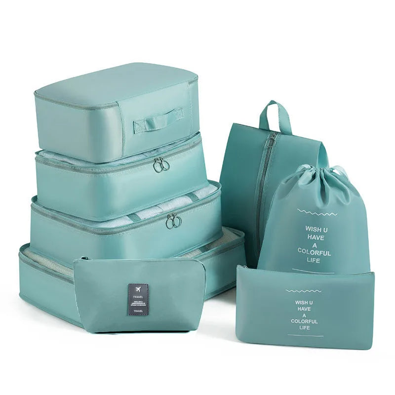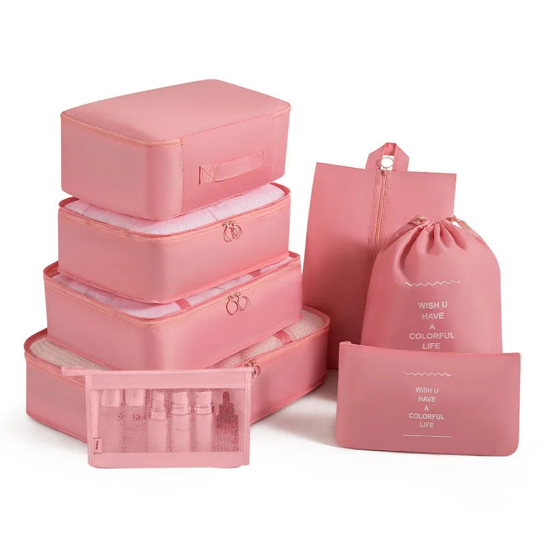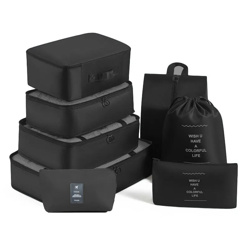Kelionėse palaikykite tvarką su šiuo 6 , 7 ar 8 dalių kelioninių krepšių rinkiniu – puikiai tinka drabužiams, aksesuarams, avalynei ar kosmetikai susidėti. Krepšiai lengvai telpa į lagaminą, kuprinę ar net stalčių, todėl daiktai visada bus po ranka ir tvarkingai sudėti.